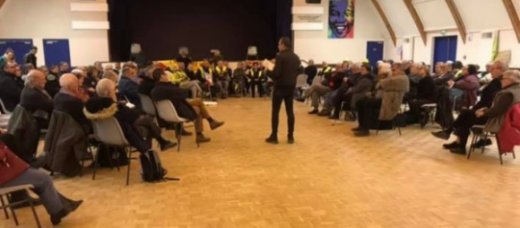 Comme on peut le voir sur cette photo publiée sur la page Facebook Blocage National dans Le Cher l’assistance est bien sage. Les personnes qui voulaient prendre la parole recevait un ticket avec un numéro comme pour les guichets de la sécu. Ça a l’avantage de pouvoir dire ce qu’on veut dire tranquillement, mais l’inconvénient c’est que il n’y a pas forcément de discussion.