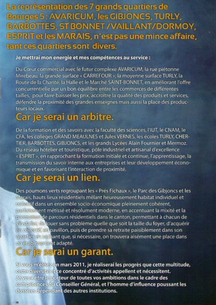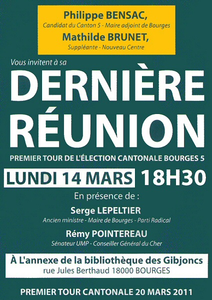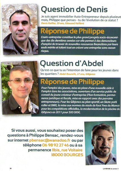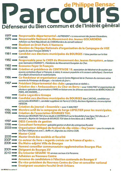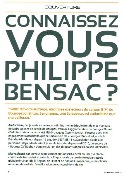 Bensac, c’est Tintin à Bourges V. Personne n’a pensé à l’envoyer sur la lune pour une petite photo ? Bon, allez, si vous avez trop vu Bensac, vous pourrez toujours voter pour Jean-Jacques Coulon (PCF), Jean-Pierre Saulnier (PS), Joël Crotté (EELV) ou Michel Canu (FN). Enfin... non, pas Michel Canu !