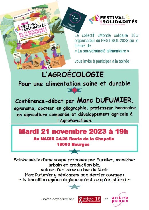 Une intervention de Marc Dufumier, ingénieur agronome et spécialiste de la question. 21 novembre, 19h00. au Nadir.
